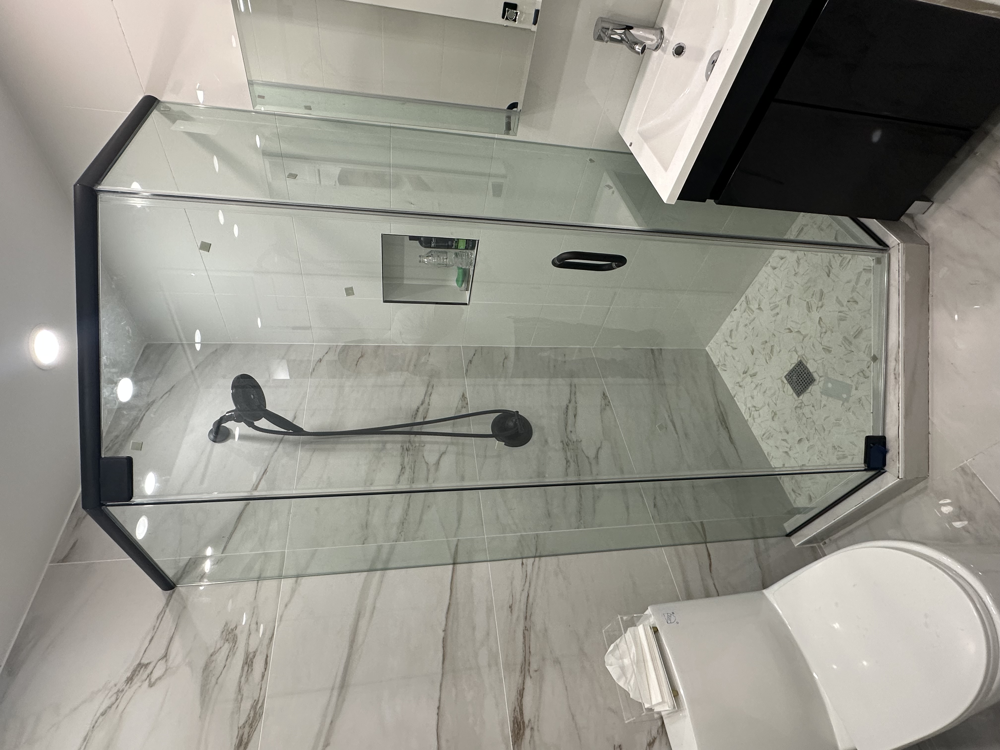 Corner showersSmall bathroomsUnique bathroom layouts