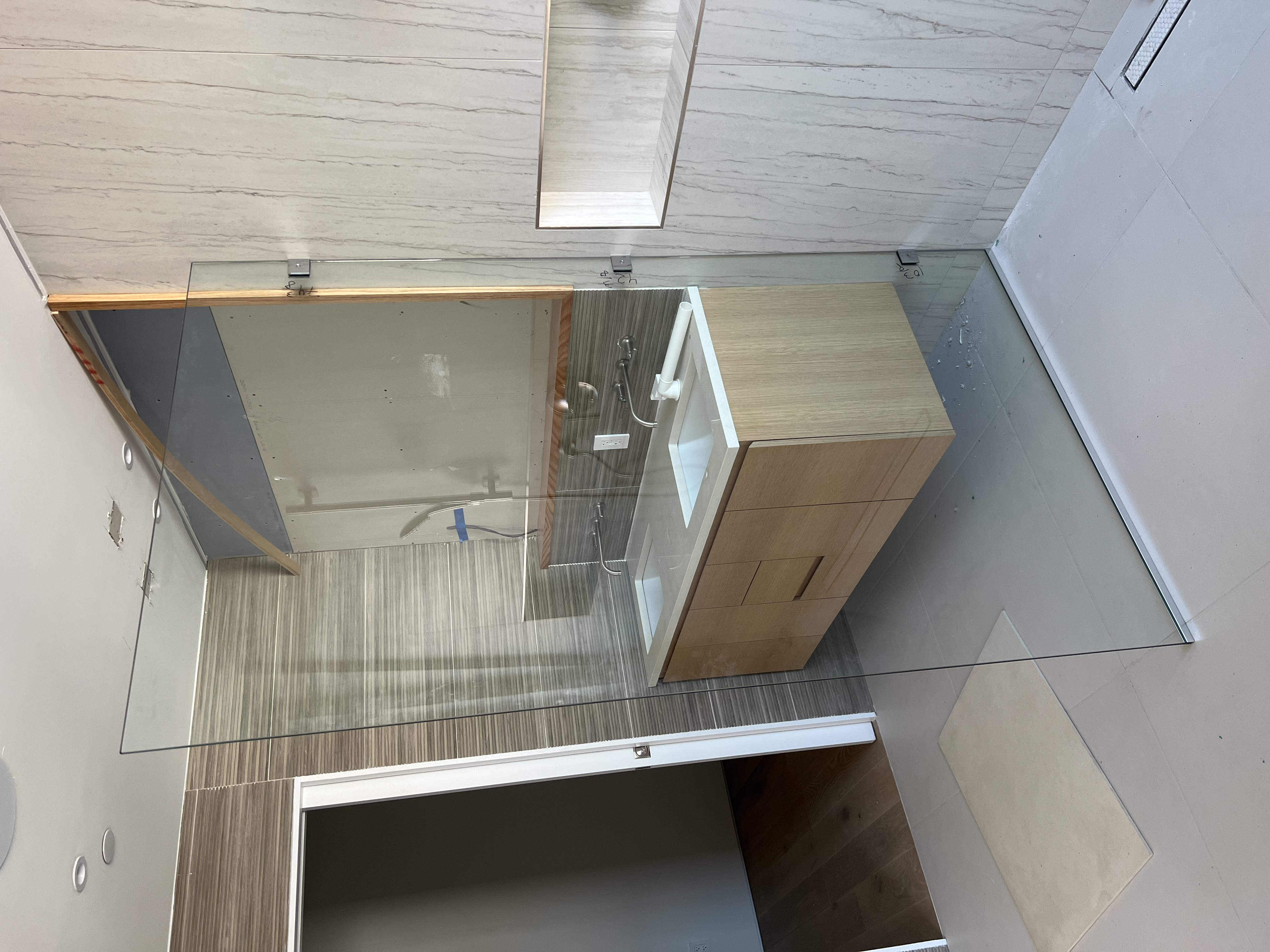 A shower panel is a sleek, minimalist solution perfect for contemporary bathrooms. This single fixed glass panel creates an open, airy feel while effectively containing water spray.