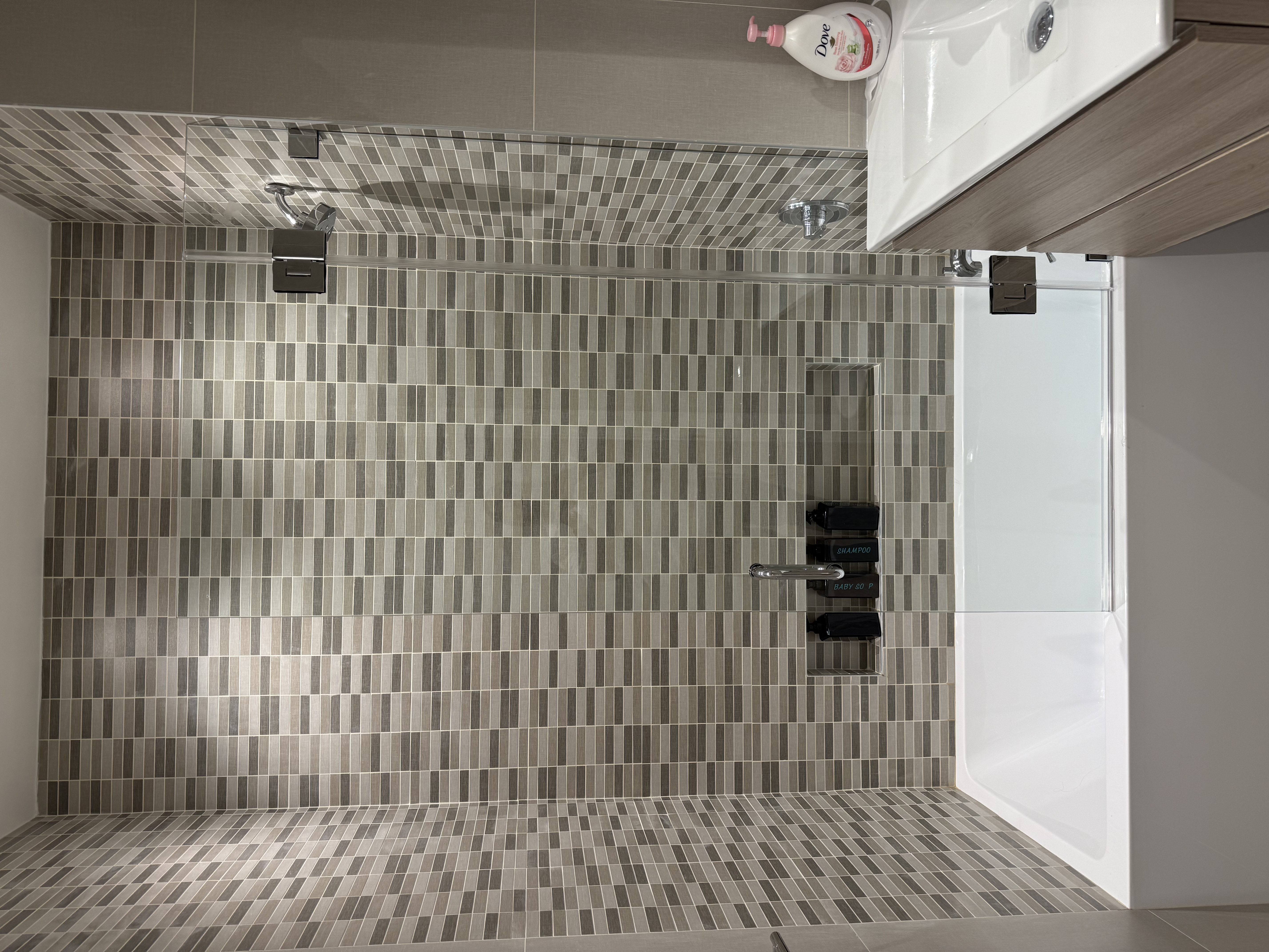 The Door + Panel configuration offers the perfect balance of functionality and style. This combination features a swinging door paired with a fixed glass panel, providing excellent water containment while maintaining easy access.