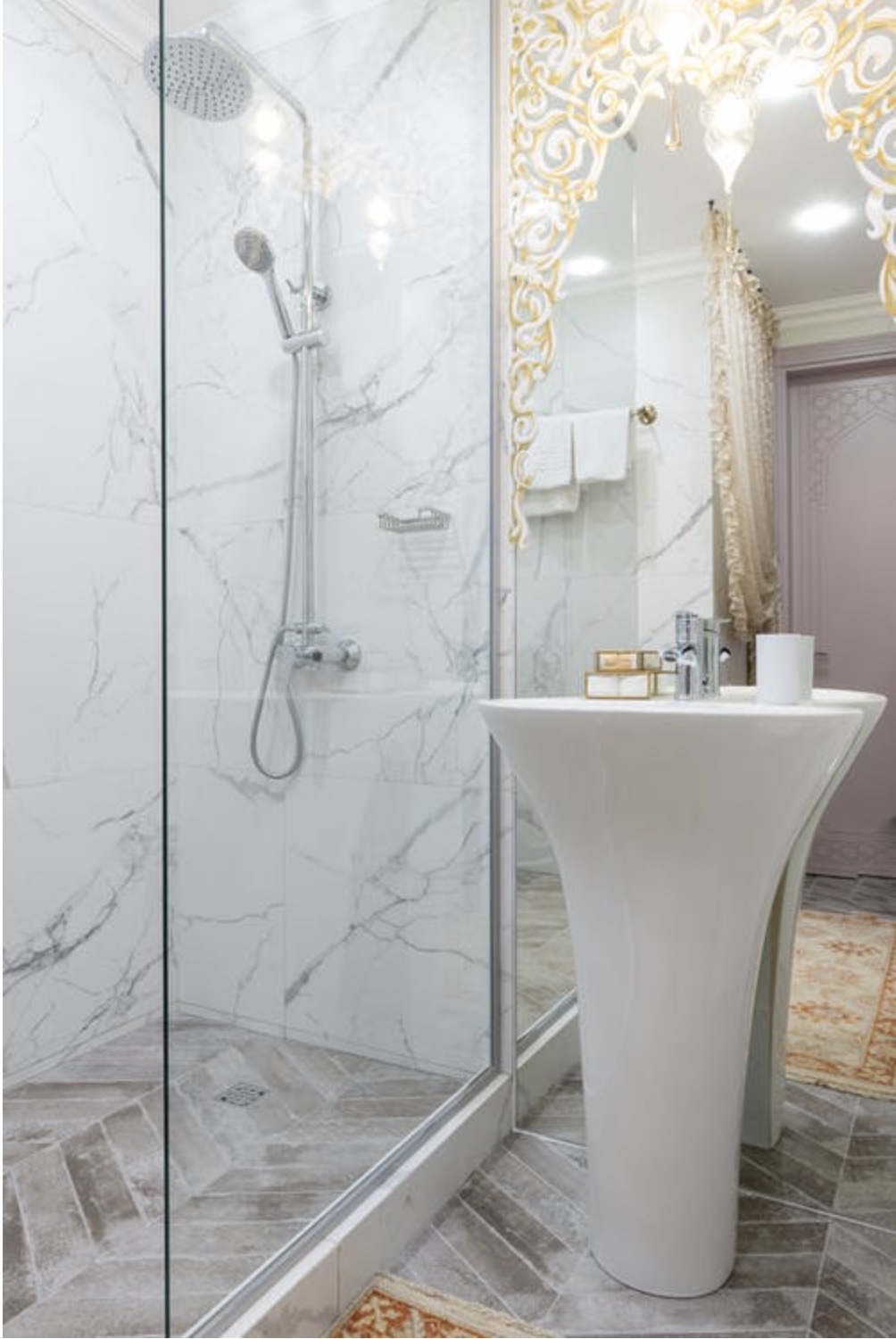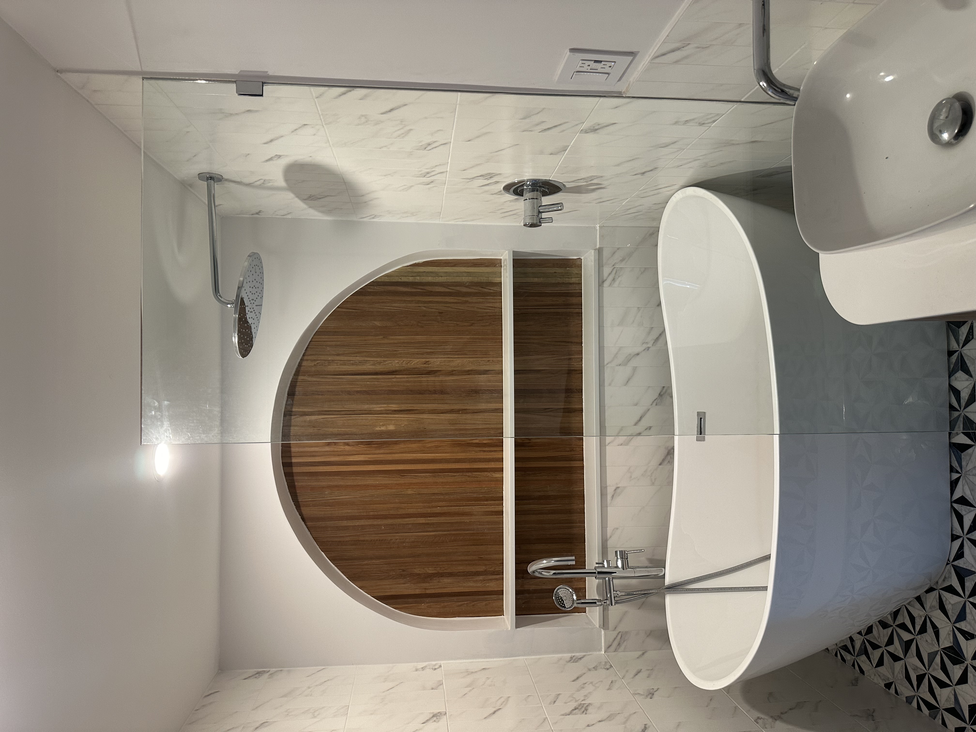 A shower panel is a sleek, minimalist solution perfect for contemporary bathrooms. This single fixed glass panel creates an open, airy feel while effectively containing water spray.